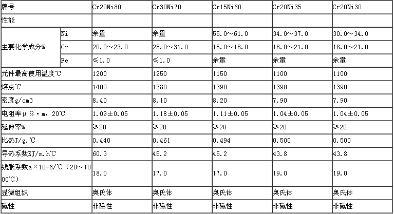镍铬电阻带主要技术性能:
